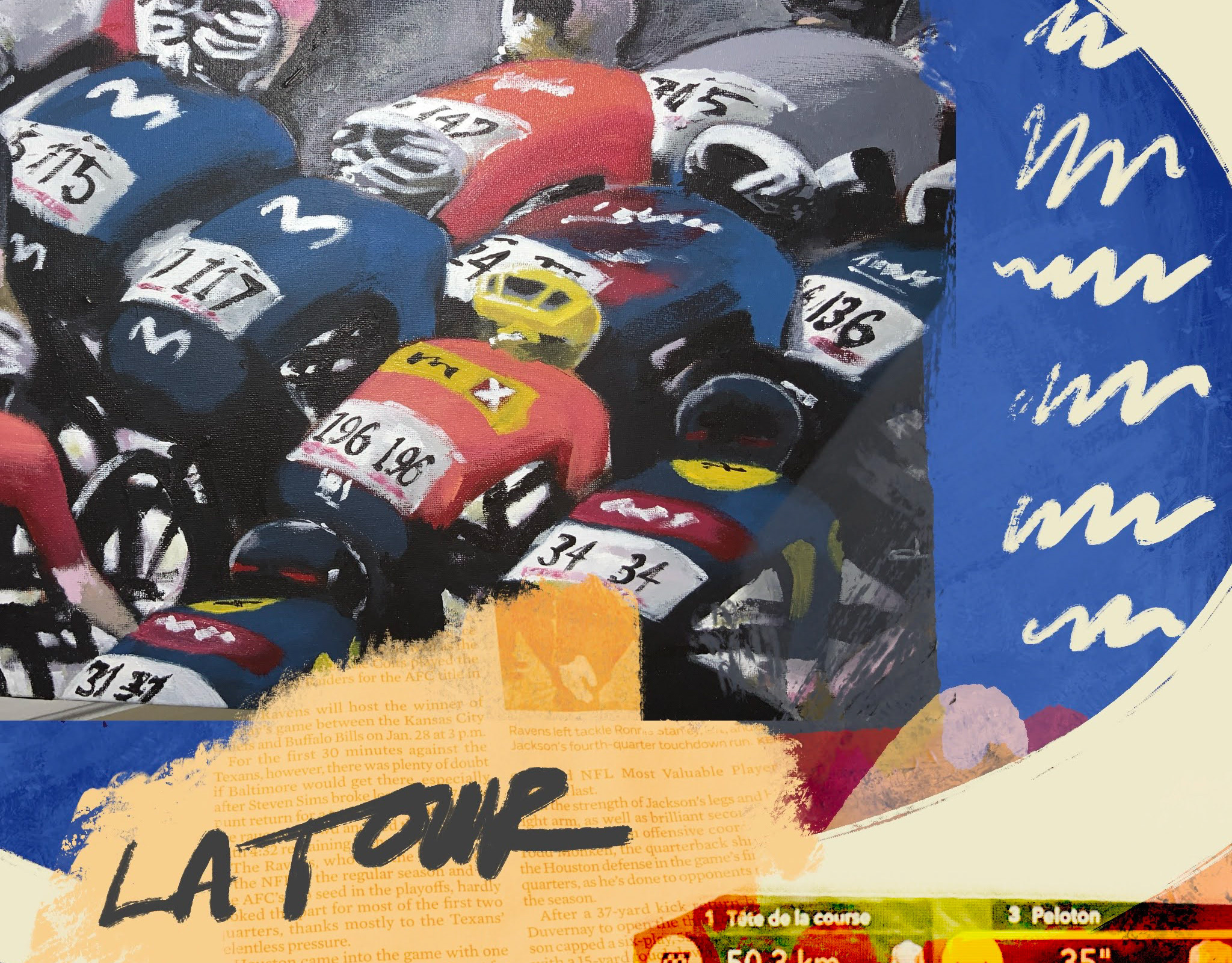 Poster concept for the Tour De France Femmes with an abstract view of the peloton along with type overlaid.
