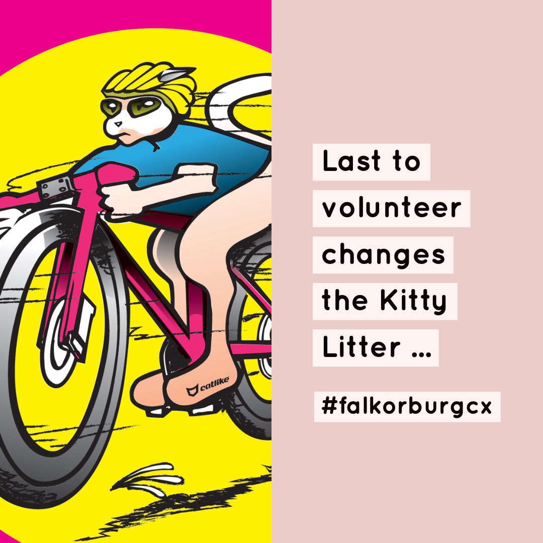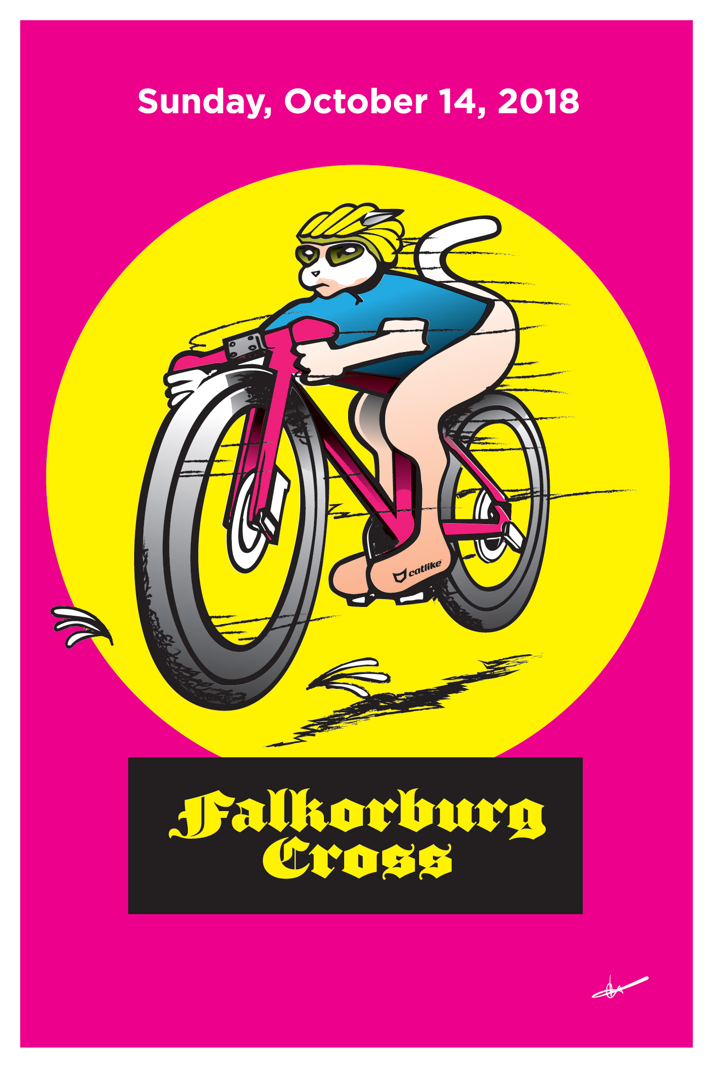 Event poster and logo design created to represent a cyclocross race named after the cycling shop's cat. The event is styled to evoke notions of European cyclocross races.